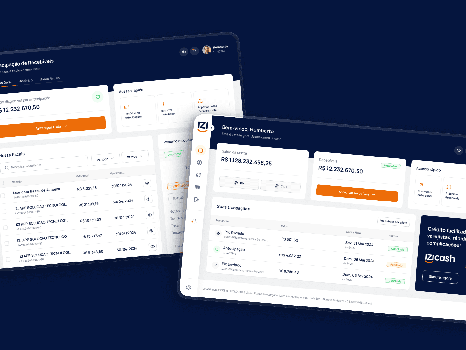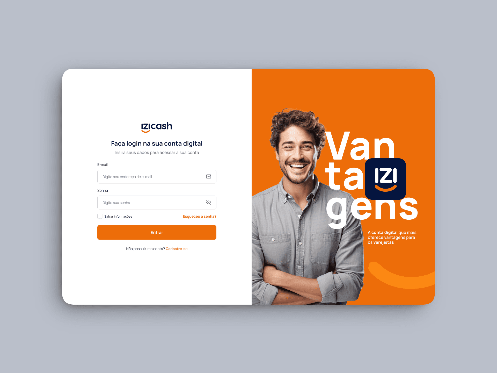 Com uma base consolidada de varejistas, o Grupo IZI viu a oportunidade de criar uma conta digital que oferecesse antecipação de recebíveis e produtos financeiros diretamente para seus clientes. O projeto exigia começar do zero: discovery completo, arquitetura de informação, fluxos de usuário complexos e uma interface que transmitisse confiança. Desenvolvemos toda a experiência UI/UX, garantindo escalabilidade e consistência entre plataformas desktop e mobile.