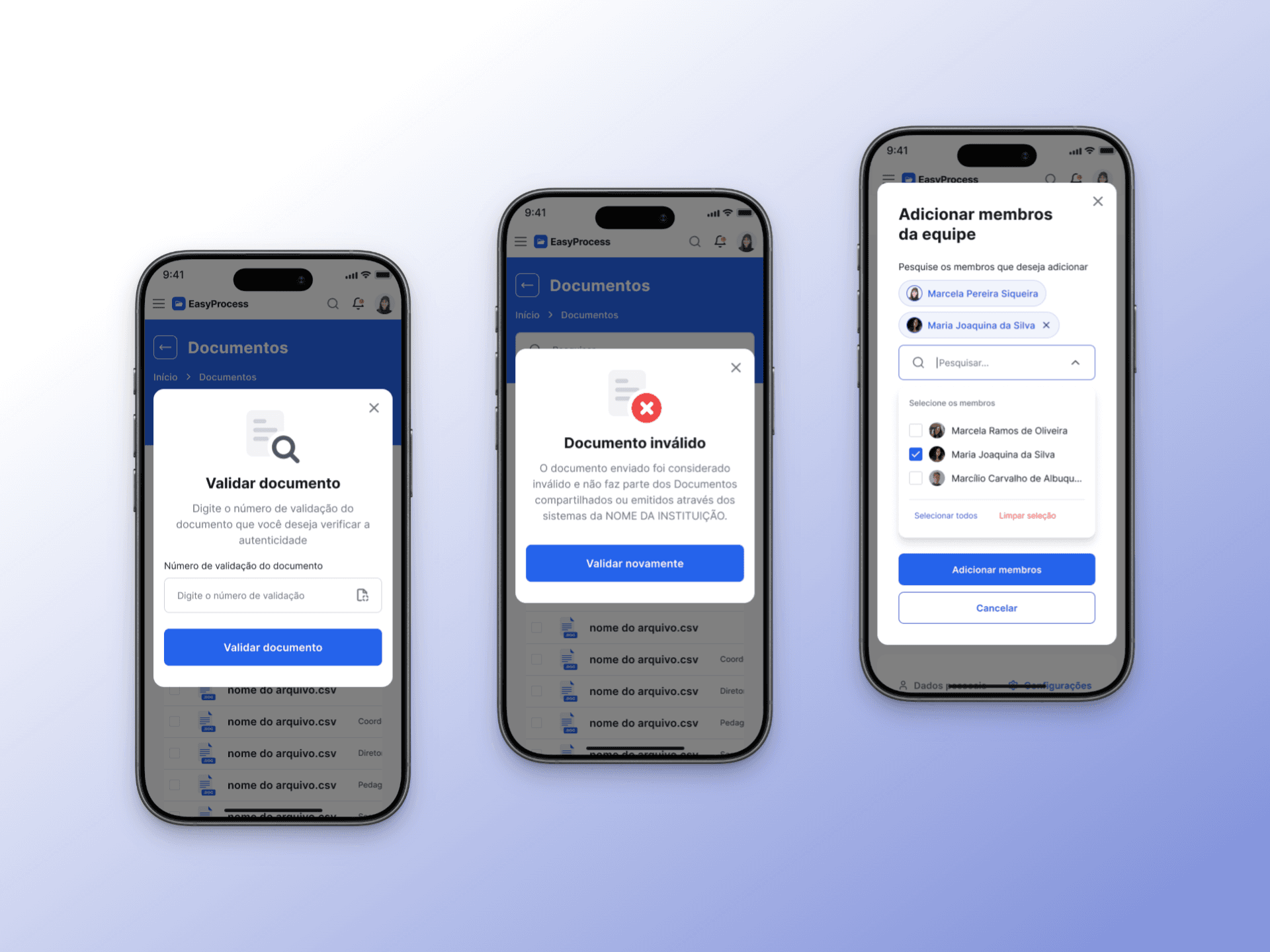O desafio não era apenas técnico, mas fundamentalmente humano: como fazer um sistema robusto funcionar para perfis completamente diferentes? O prefeito precisa de visão estratégica, o servidor de ferramentas operacionais, o cidadão de simplicidade para solicitar serviços. A Maatz conduziu discovery completo mapeando os fluxos a partir da documentação compartilhada pelo cliente, depois traduziu essa complexidade em experiência coerente. Criamos arquitetura de informação que organiza dezenas de funcionalidades sem sobrecarregar usuários, interfaces que se adaptam ao contexto de uso, e sistema visual que traz credibilidade institucional sem parecer antiquado. O EasyProcess prova que gestão pública pode ser tão intuitiva quanto produtos digitais modernos.